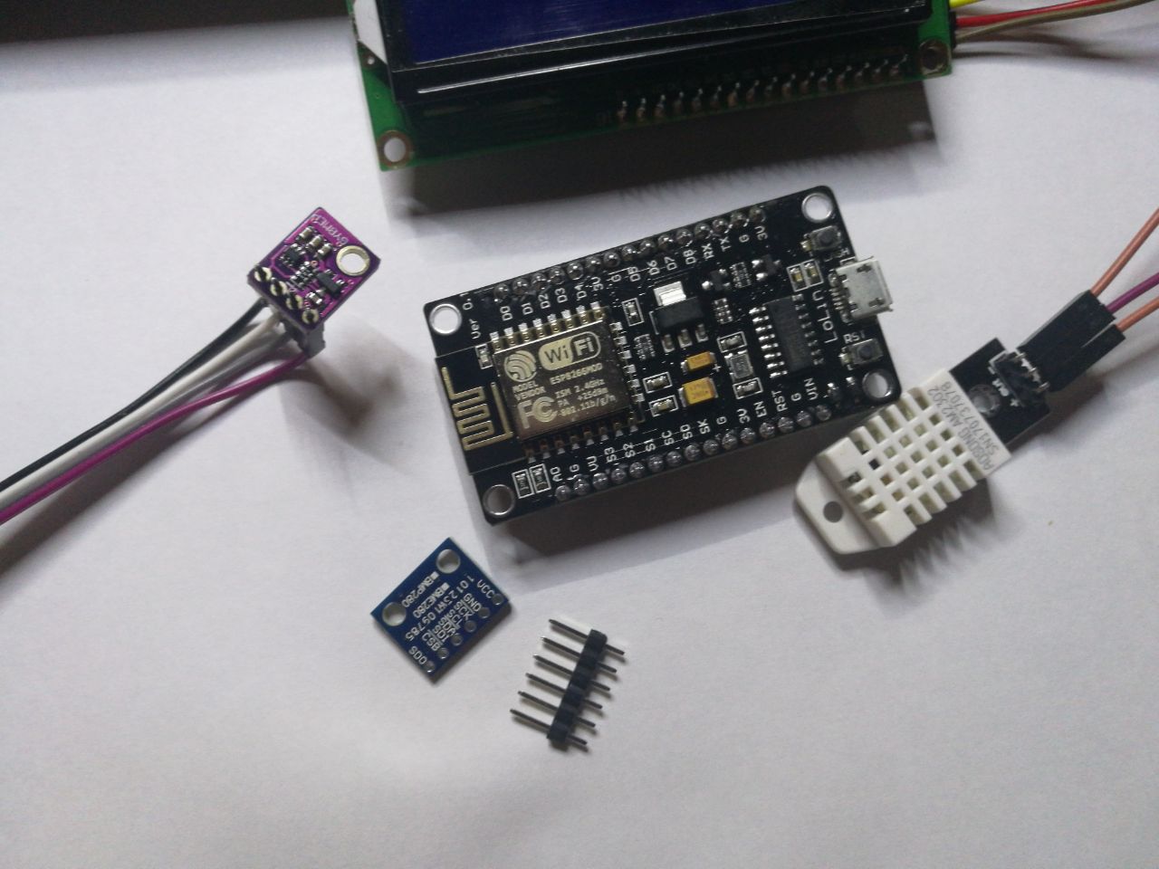 Когда встал вопрос , какие датчики использовать, то решил, что оптимальным компромиссом будет si7021 + bmp280. Причём бмп в одном корпусе с есп, а сиай однозначно за его пределами. Один в комнате, другой на улице. Но - есть одна засада - у них один и тот же адрес i2c. Поэтому на улицу отправился dht 2203, а si остался дома.
