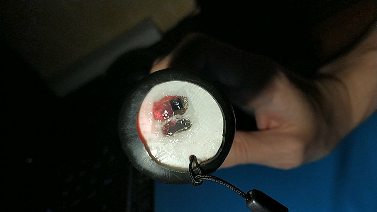 вроде и потроха внутри и сами контакты к которым провода припаяны в термоклее, но вот в верхней части полоса этого движкового переключателя открытая