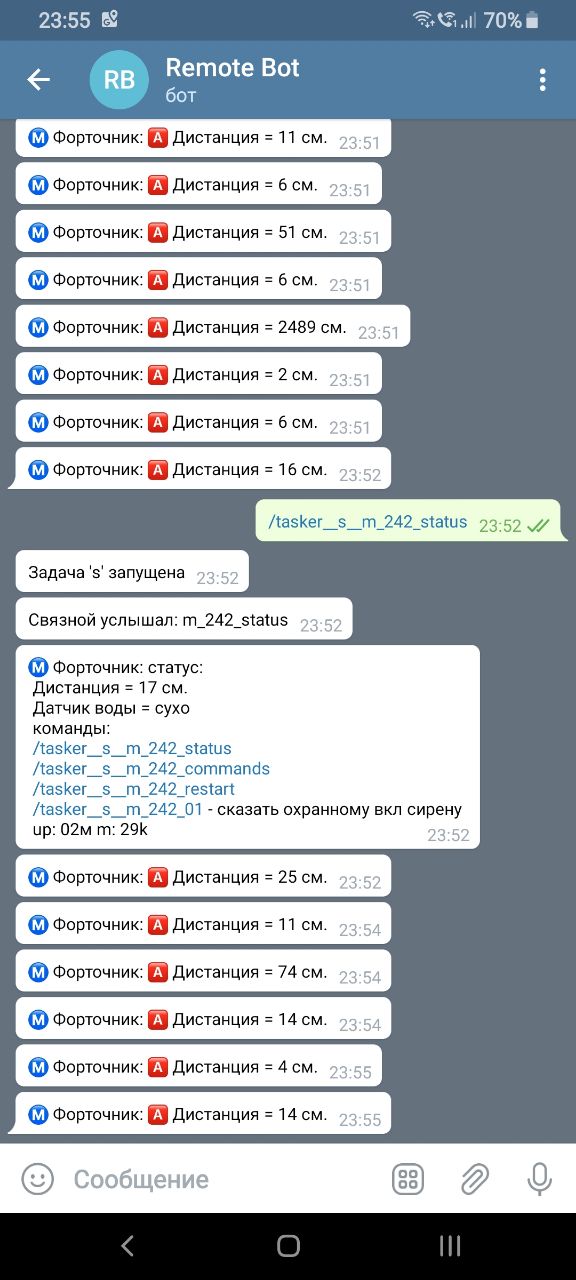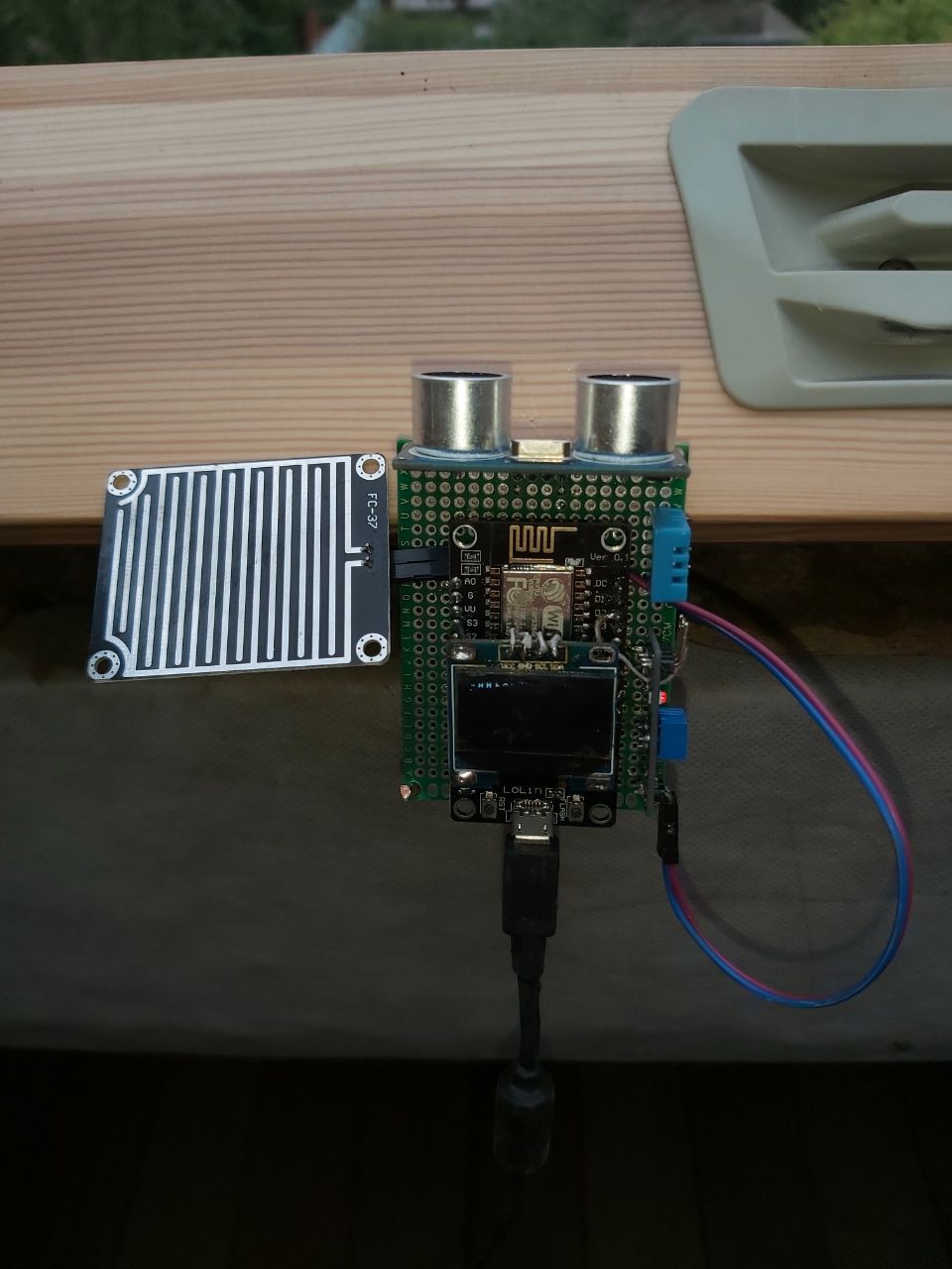Вкратце... Меряет расстояние до рамы окна, всегда знаем закрыто или на сколько см открыто мансардное окно, датчик протечки на случай дождя, если я мудак окно не закрою, дождевая вода польётся на нижний этаж. Датчик температуры приделал потому что он был и был свободный порт на есп. Отчет шлет на другую есп32 далее и телеграм или сразу в еспнотифи на смарт.