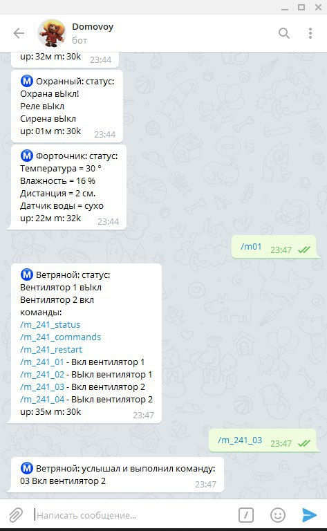 вот только не понял прикол - прошло часа 2-3 в дежурном режиме и бот перестал отвечать, а железка выполнять команду (вкл/выкл светодиодом). Посмотрел на роутеле - коннект есть, пинг до модуля есть. Короче пока не резетнул ниче не помогло и после включения в бот посыпались команды вводимые пока модуль не работал. Кто то сталкивался, значет почему так?