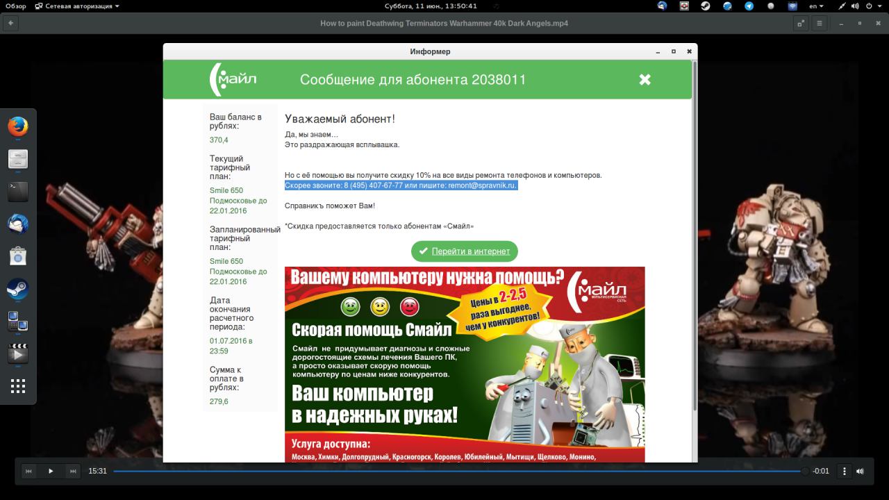 Просто выскочило окно при просмотре видео