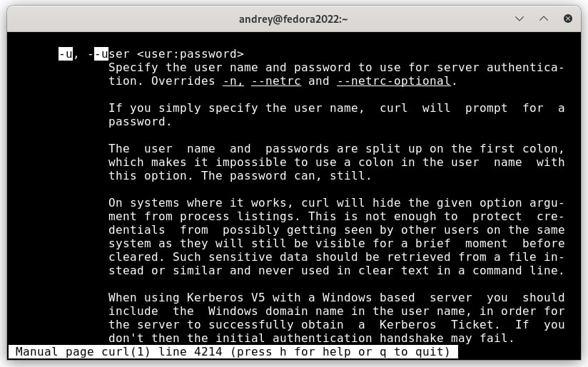 скажите, вот мне надо сделать запрос, в апи показывают как делать его через curl, юзают там -u, а в HTTP че это значит ? вот я знаю хедеры, тело запроса, а -u это что и куда ?