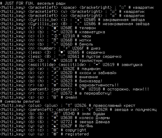 хм... это, видимо, не то... .Xcompose файлик должен их определять... там не только один символ может быть, но и набор...