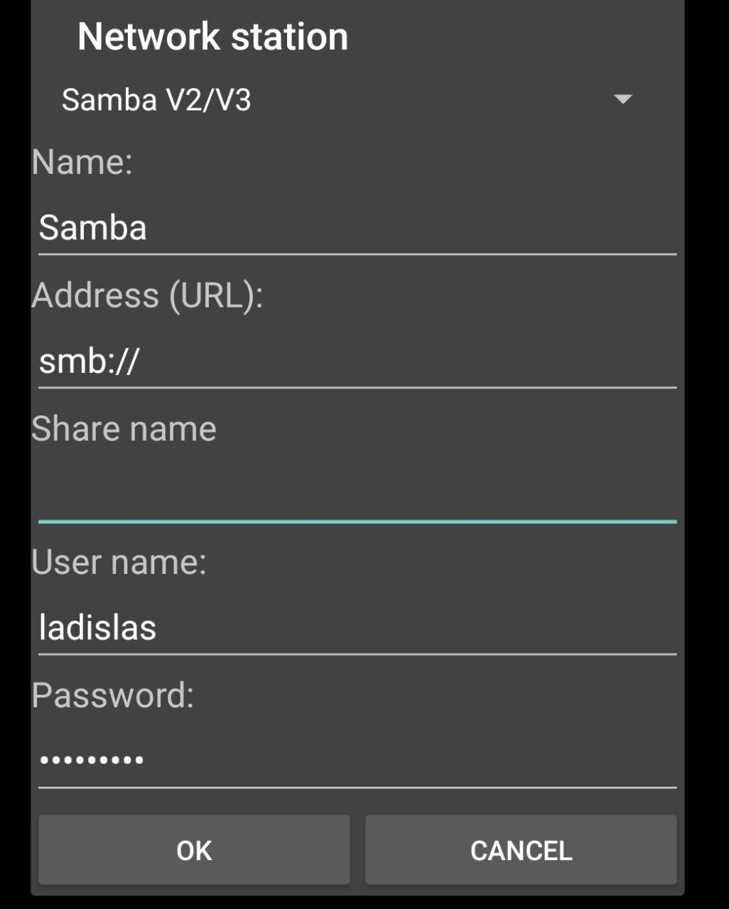 Есть у кого минутка на самбу? Что надо вписать в share folder? С пк нормально подключился, а с телефона беда
