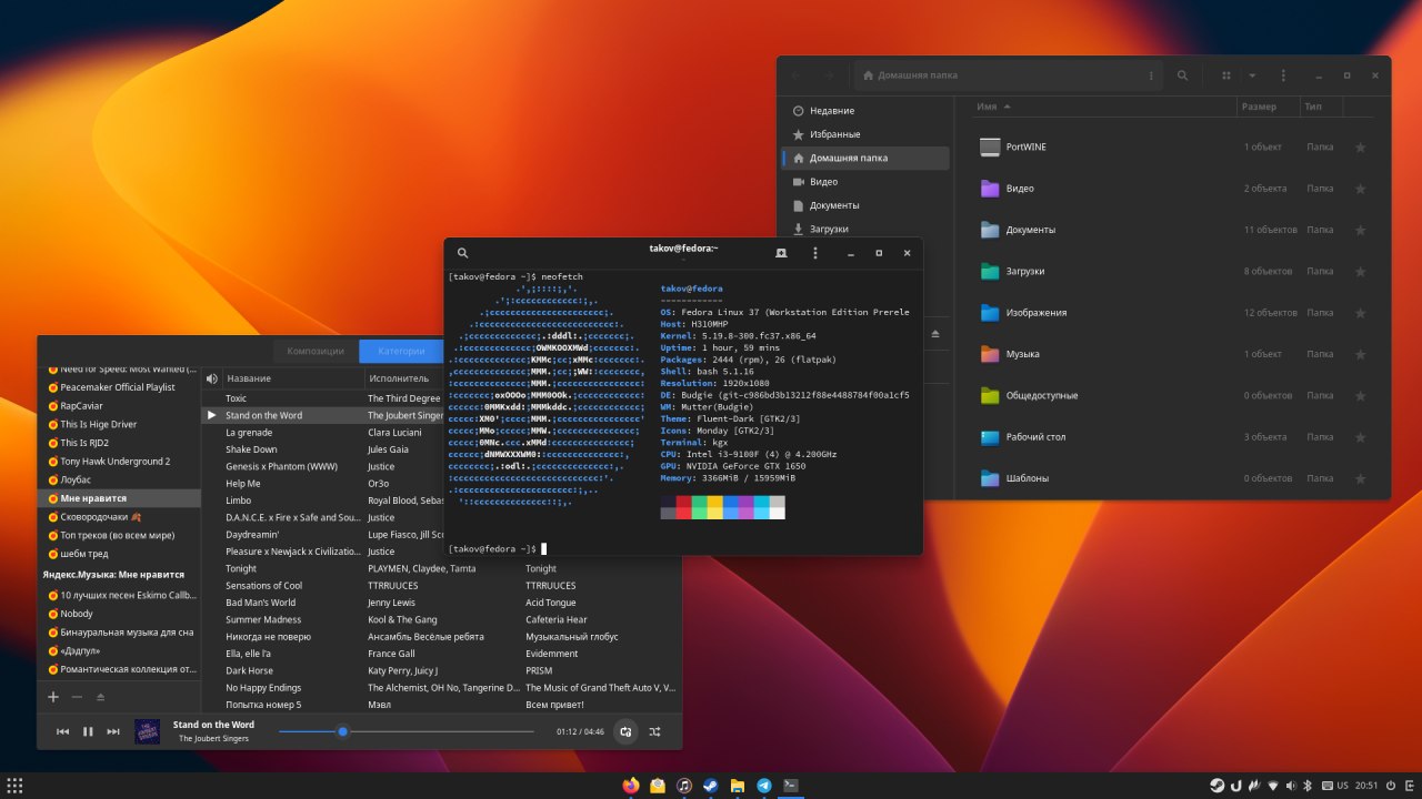Я гедит накатил, гном-консоль, наутилус, днфдрагору, а ну флеймшот и юлаунчер