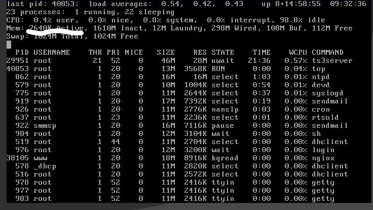 It uses 350 memory with desktops, freebsd without desktop, 380 uses of memory.