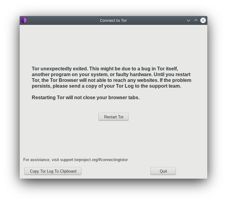 a couple of days ago I tried to install tor-browser according to their installation description. In order to make it work, I also followed the steps in FreeBSD-Handbook for installing the Linux compatibility-layer. Since then I can start tor-browser up to this error message. I already tried to use tor-bridges. Same result. Any ideas?