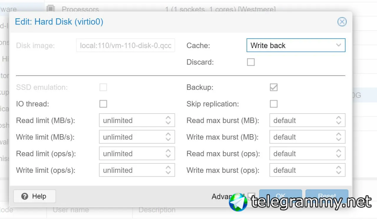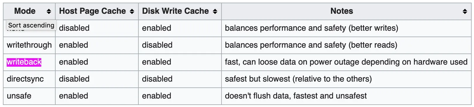 вообще голый проксмокс. writeback выставлен на диске только(который при настройке виртуалки), но это и до проблем было включено, далеко до меня