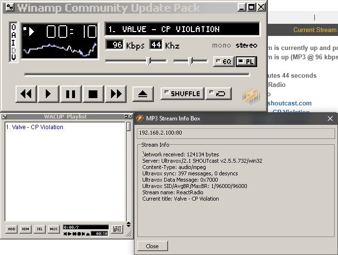 ReactOS seems to be able to broadcast audio streams when using Shoutcast along with Winamp