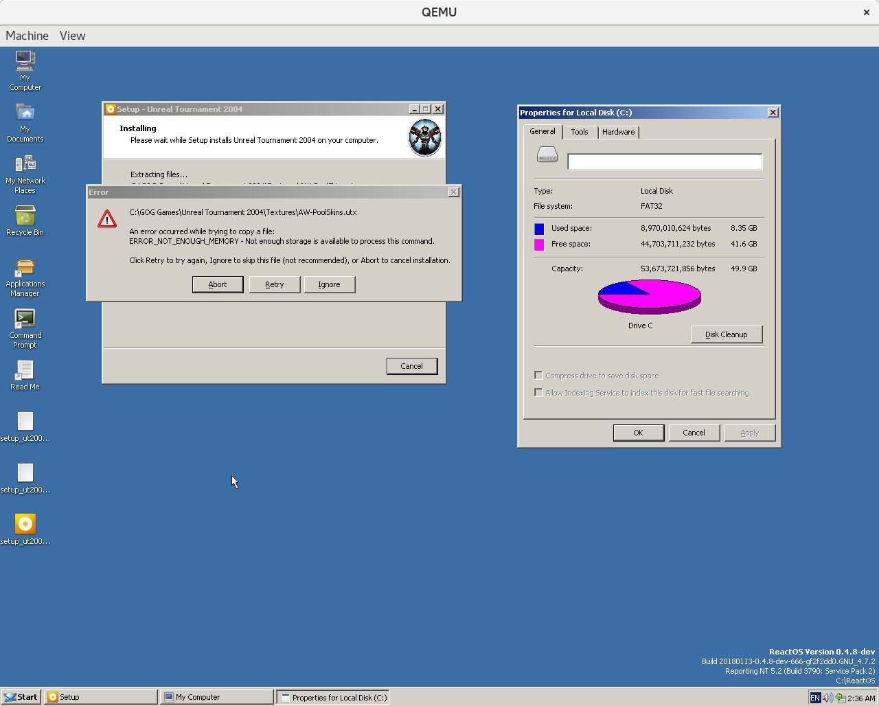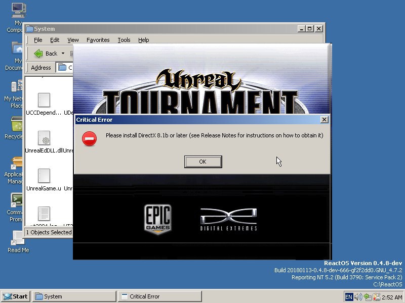 today... I tried installing DirectX 9 in ReactOS. Unreal 2004 still won't recognize it and won't launch :P