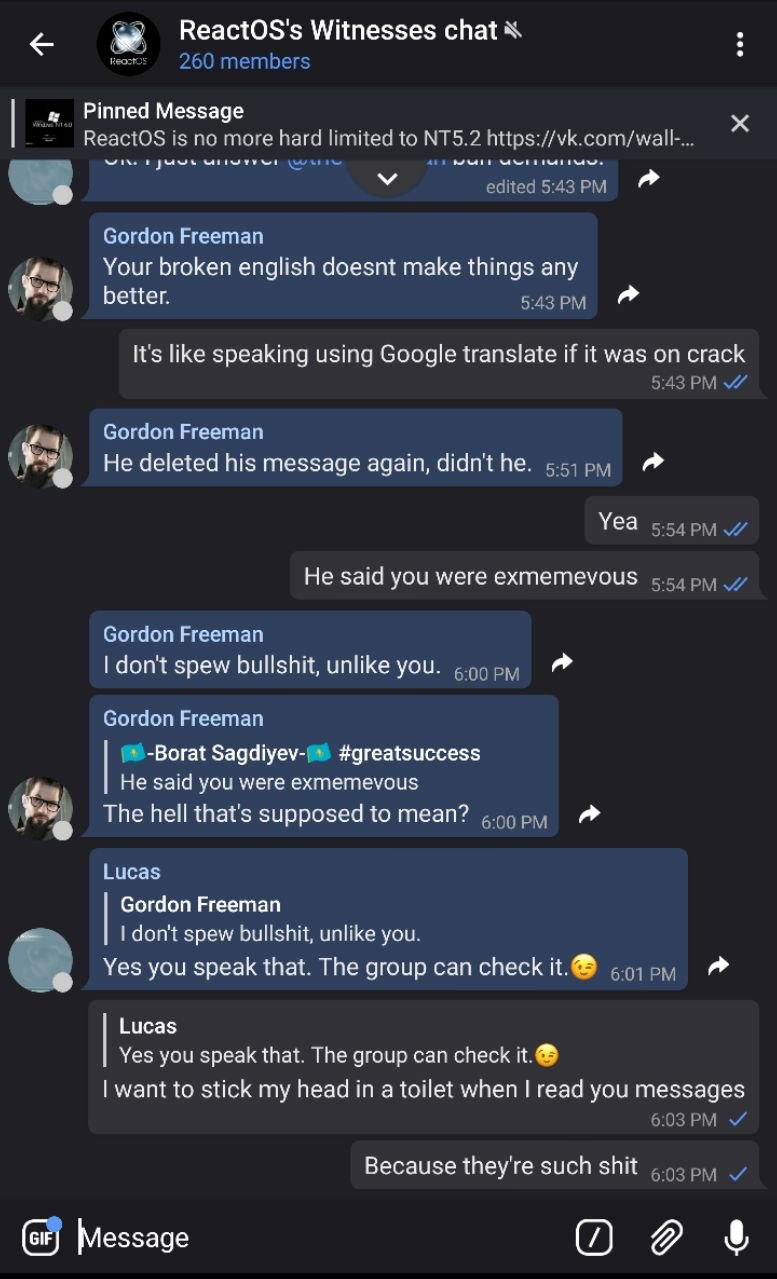 fact of the matter is that the whole reactos chat here is more intelligent than his sorry ass.