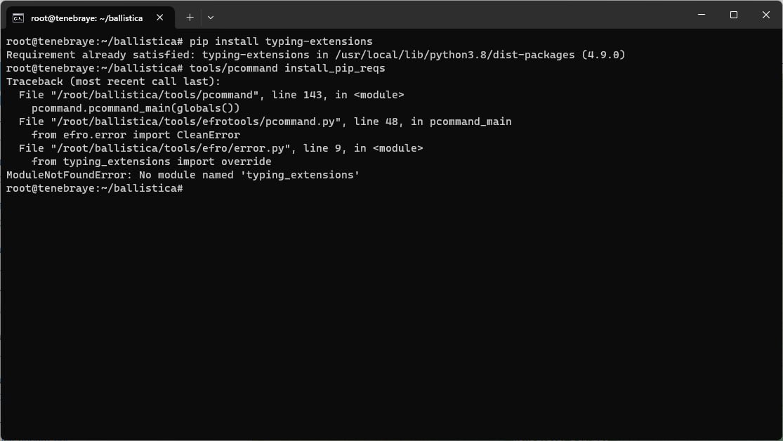 я пробовал установить модуль typing-extensions через команду - pip install typing-extensions и вроде бы все получилось, только вот компьютер все равно не может модуль найти