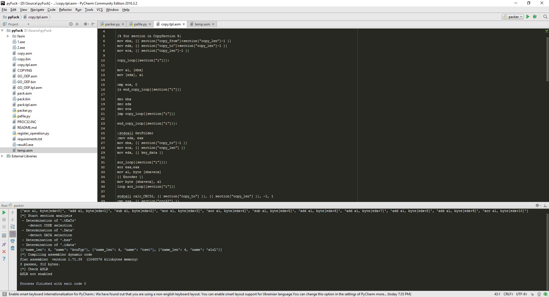 но пока что мое программирование на асме все же выглядит вот так