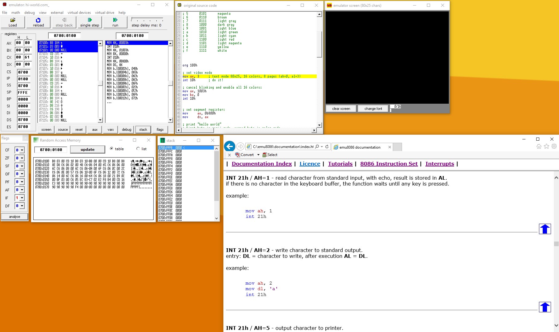 Какие есть инструменты сейчас для Win и *nix? Как эмулировать простейший 8086?)