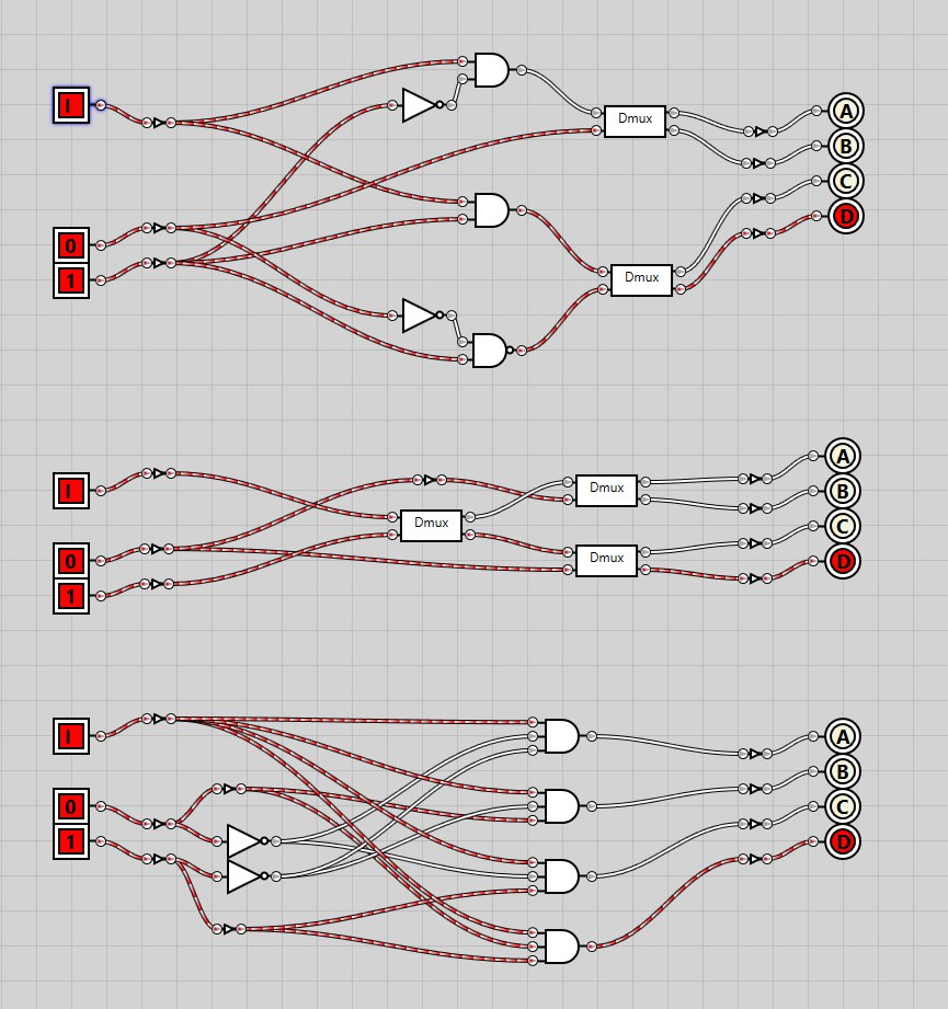 Да, я в симуляторе создаю из уже созданных на базе Nand элементов компоненты логики, потом пишу их на HDL, тестирую с симуляторе. Что бы собрать из них более сложные элементы: Adder, ALU, DFF, Register, RAM, ROM )))