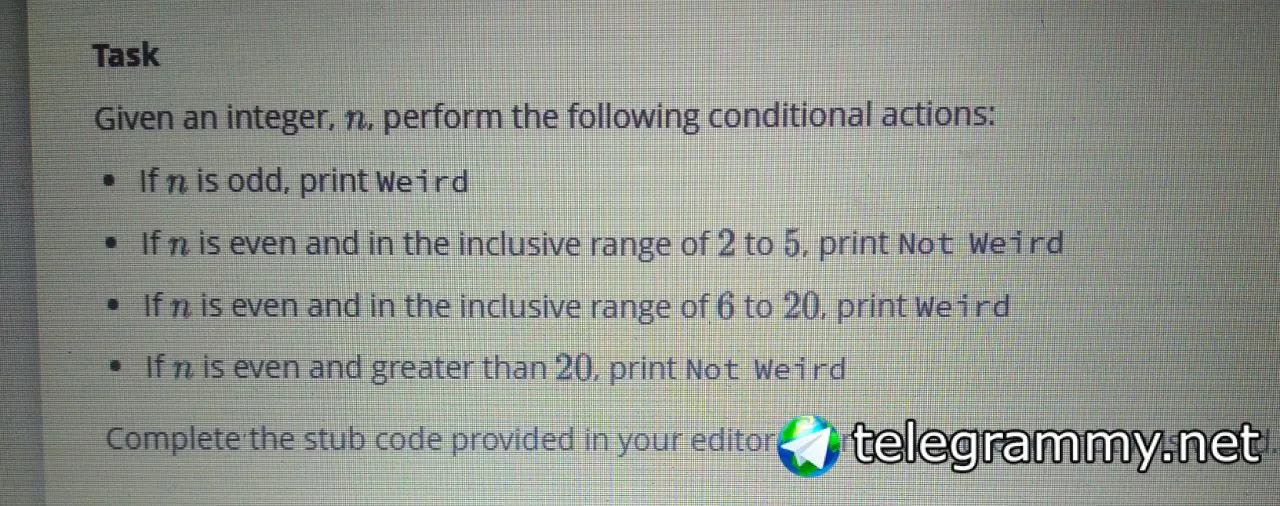 even/odd with modulo-operator %. the other things with compare-operators <=/>=. Combine them with &&. print with printf