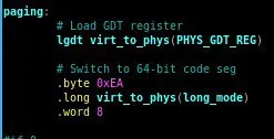 look how i do a long jmp in asm to go to 64 bit code in a kernel i am writing