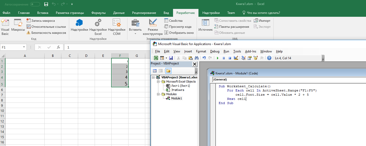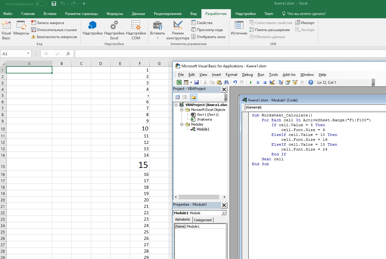 > я составляю таблицу-программу в екселе, но сейчас конкретная задача - сделать так, чтобы когда производились расчёты в ячейке F3, определённые числа менялись в размере шрифта.