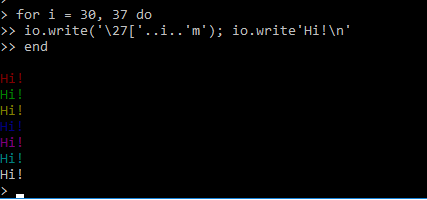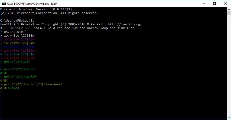 а как в луа вывести цветной текст в терминал? пытаюсь так, и не полуается. print("\033[7m RPL-router version\n \033[0m")