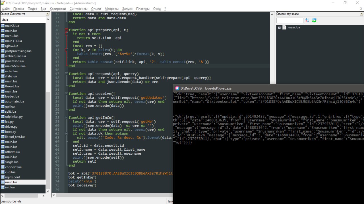 Хех, пилю простую апишку для луашного телеграммо-бота. Для https - libcurl. Мда. Потому что под вендой нет нормального универсального биндинга lua-https.