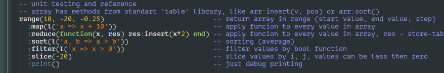 Во, делал луа-массивы в функциональном стиле. Тут пример заодно этих стрелочных функций.