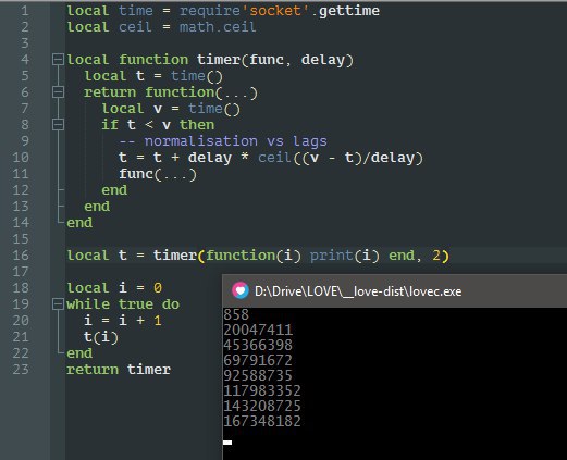 Можно и до и после пихать любое количество кода. Оно просто работает раз в секунду. Правда, за счет того что os.time дает только секунды, получается выставлять таймеры только кратные секундам. С сокетами и gettime можно получить миллисекунды и делать чуть более сложную логику.