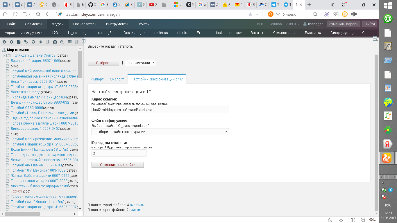 Здравствуйте! Вопрос про catalogfill1c, в этом модуле в разделе выгрузка в 1с указана ссылка до скрипта, который запускает синхронизацию. А по данному пути никакого start.php нет. Вот, часть кода отвечающий за данную вкладку на скрине: function saveSettings1Csync(){