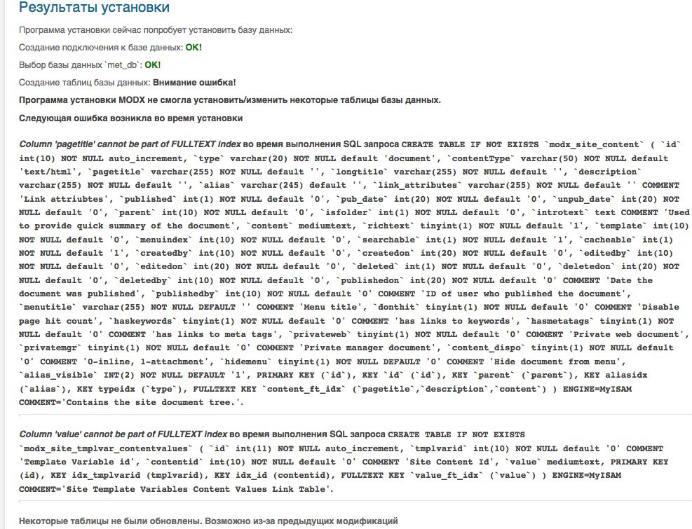 Прошу прощения если нарушу какие-либо правила этого чата, помогите, пожалуйста, разобраться, в чем может быть причина: при обновлении сайта с modx 1.0.10-d5.4R (сборка Димы), до последней и предпоследней версии, выскакивает следующая ошибка