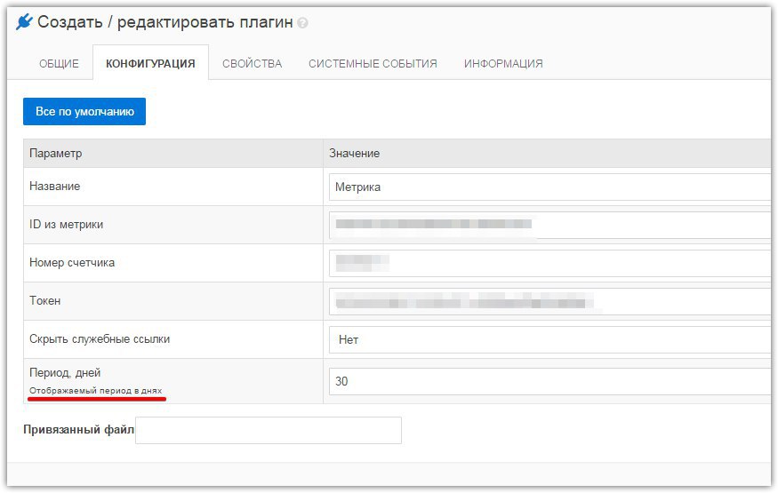 &widget_name=Название;string;Метрика &id=ID из метрики;string; &counter_id=Номер счетчика;string; &token=Токен;string; &hide_links=Скрыть служебные ссылки;list;Да,Нет;Нет; &days=Период, дней;int;7;;Отслеживаемый период (дней)