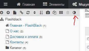 В дереве документов значки сверху, последний значок в форме круга разделённый пополам