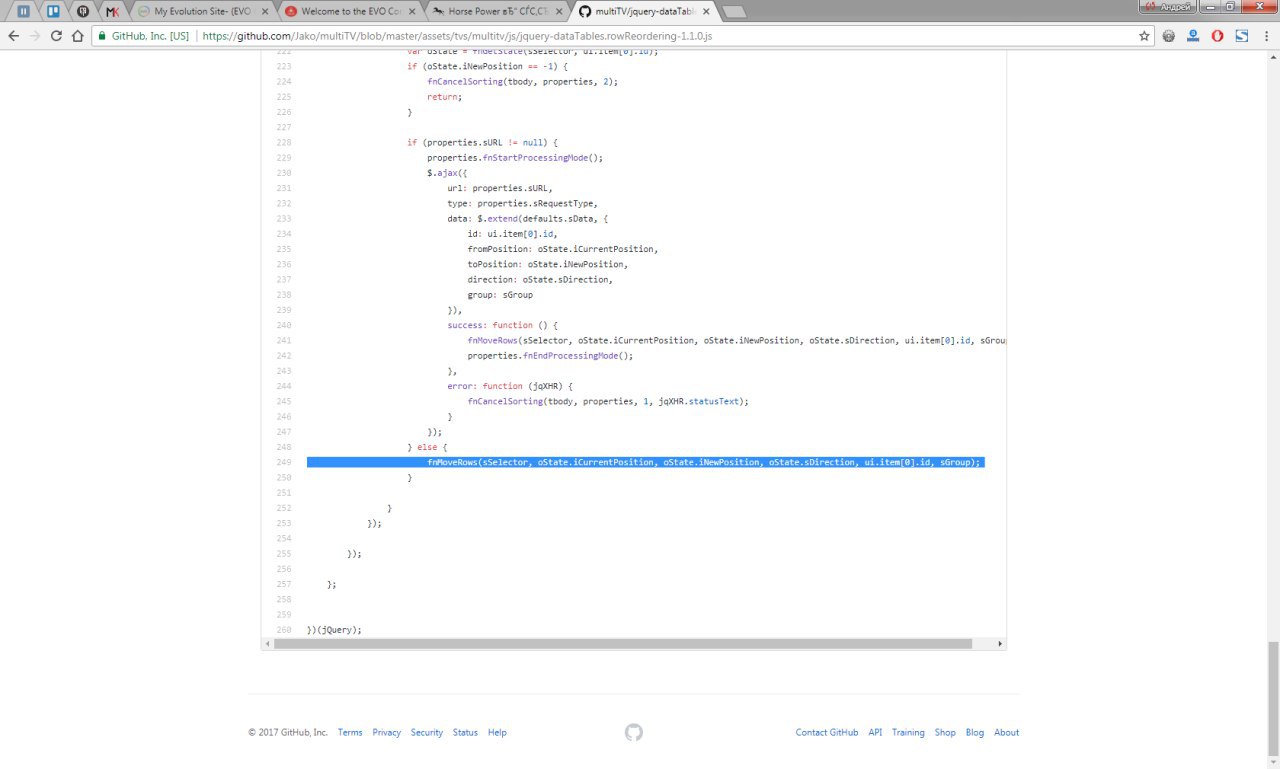 В последних версиях MODX Evo, в том числе и в вашей версии, есть баг с Мульти ТВ - не работает сортировка в режиме datatable (драг энд дроп работает, но при сохранении порядок не сохраняется). Я поправил там немного код, и все работает теперь. Как мне это внедрить в репозиторий МультиТВ?