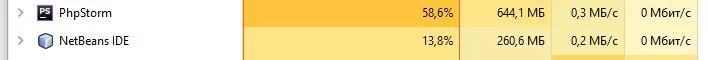 ну и phpstorm у меня чего-то меньше жрет памяти...не всегда, но до 500 редко доходит