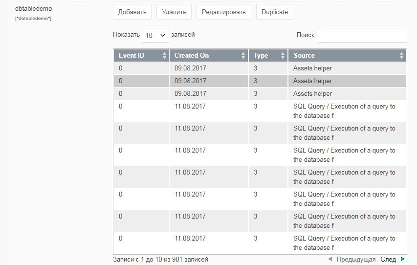 поставить мультиТВ и создать тв с названием dbtabledemo