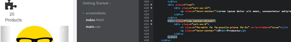 прописал center-block в .row и увеличил сам блок, но картника вообще ни в какую не хочет смещаться