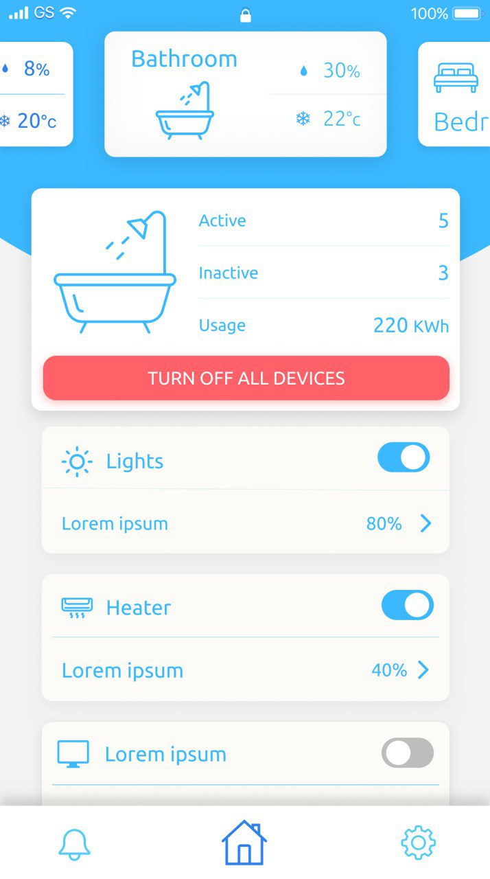 Мне кажется кнопка «вырубить все» прекрасно смотрелась красной. Той, что во втором варианте. Это же прямой смысл «СТОП»)