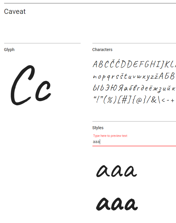 https://fonts.google.com/specimen/Caveat - б***ь, сколько времени пользовался этим шрифтом, и только сейчас заметил, что у него по 3 (три!) разных варианта начертания для каждого с**а символа!