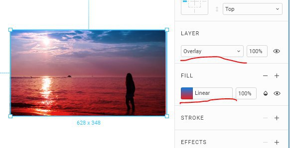 ну во-первых: фигма не обрабатывает фотки, а во-вторых есть только режим смешивания