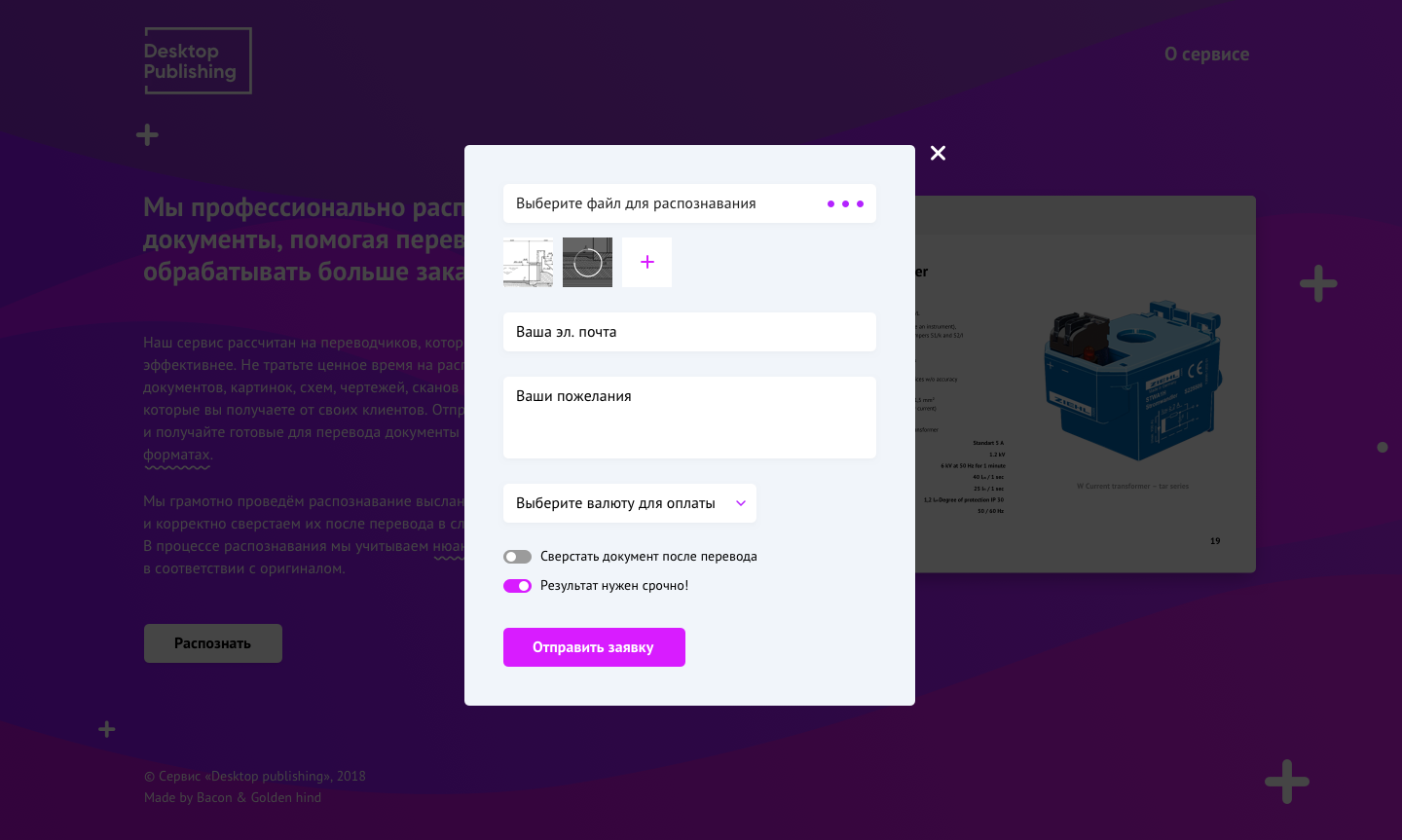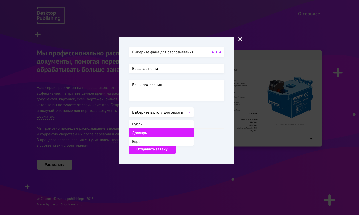 пользователь выбирает продукт, вводит номер, если надо выбирает доп параметры и жмет кнопку реквест.