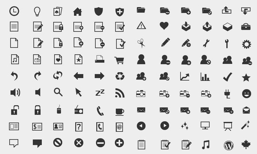 Для примера: тут есть резкость и четкость тонких линий (второй ряд, иконки документов слева), но иконки, во-первых, плохо сочетаются друг с другом (иконка дома в первом ряду, иконка ножниц в третьем, иконка принтера слева от тележки в четвертом, две крайние справа иконки в первом ряду и так далее), во-вторых, слишком безличны (две крайние справа в первом ряду, иконка дома, иконки людей), в-третьих, не всегда адекватно различимы (иконки папок с субиконками в первом ряду).