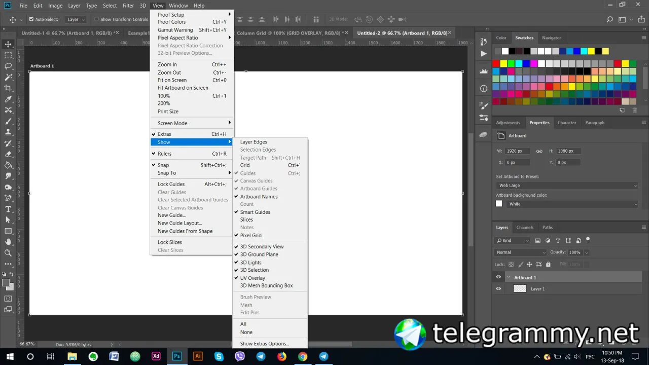 у меня на артбордах вообще заблокированы показ сеток нажимаю гор клавиши ничего не появляеться