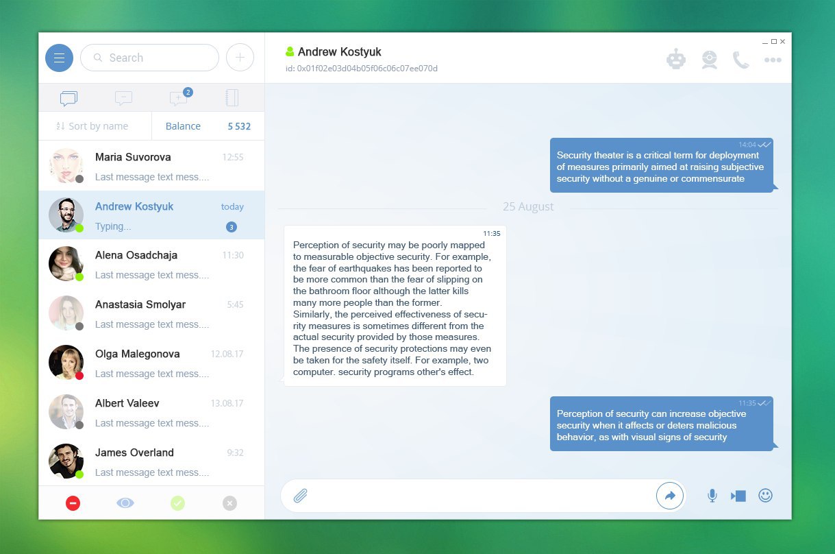 мне это напоминает, если бы какой-то злой ученый соеденил дизайн скайпа, и телеграмма а ещё посыпал бы это немного обыкновеностью , получилось бы это)