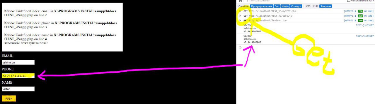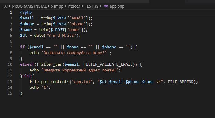 и что за ошибка такая Notice: Undefined index: email in X:\PROGRAMS INSTAL\xampp\htdocs\TEST_JS\app.php on line 2