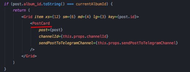 Это условный альбом, который висит на конекте со стейтом, в котором я отрисовываю карточки, которым передаю пропсы