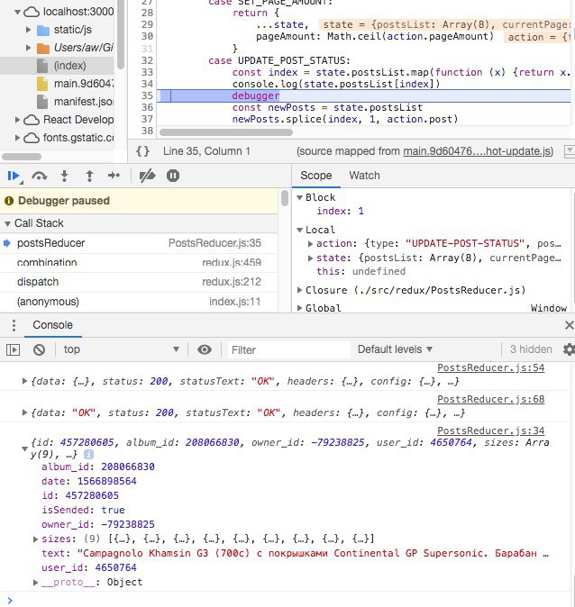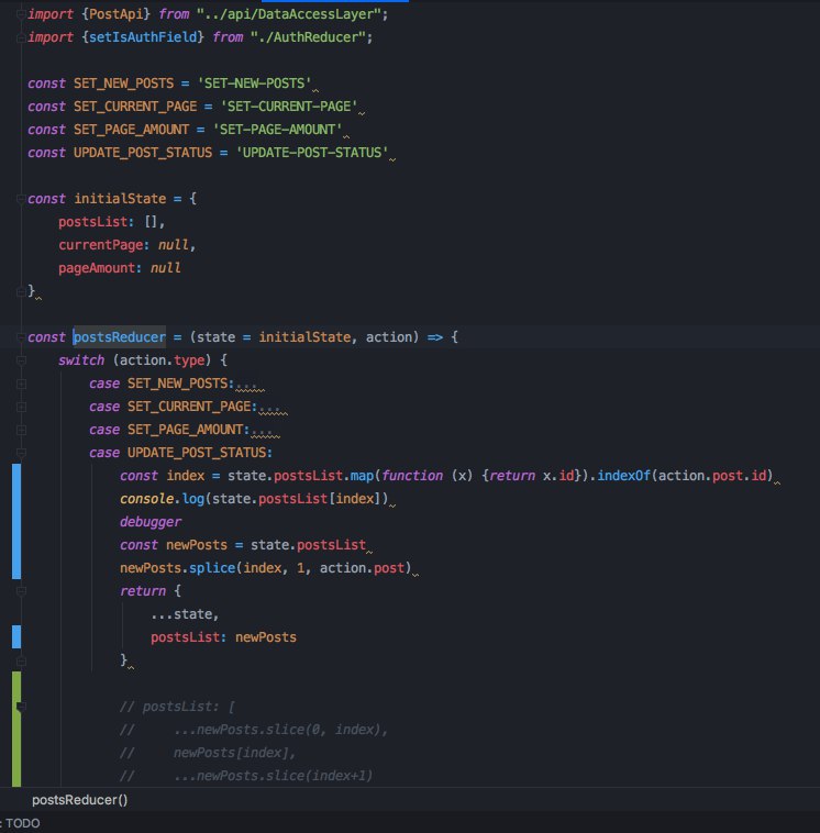 Я в самом начале показывал, что стейт изменен, а пост не отрисован