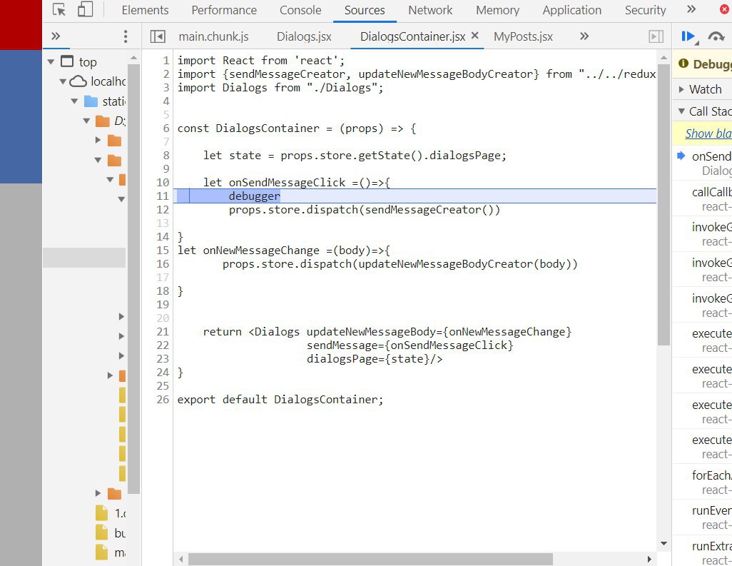 Либо меняй расширение на js либо устанавливай плагин для хрома, который дебажит реакт приложения. Сам не пробовал, но знаю такой есть