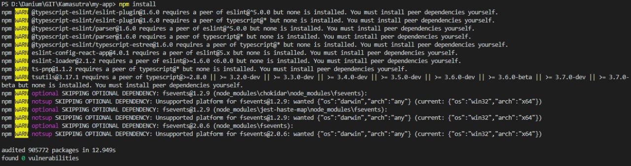 Дофига ошибок вылетело при npm install