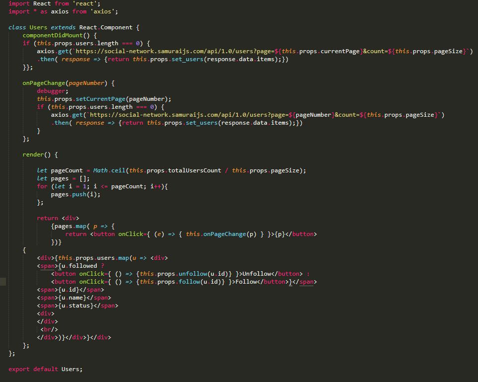 Здравствуйте, помогите пожалуйста. Застрял на 55 уроке, pagination. Почему-то не изменяется currentPage в initialState. Может кто-то сталкивался с этим?