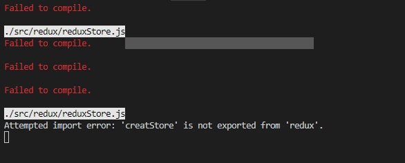 Уважаемое сообщество. Прошу помощи. На 42 уроке когда подключали Redux, выдается ошибка 'creatStore doesn't export from redux' сам redux установил , в интернете нет решений подобных проблем. Благодарю за внимание