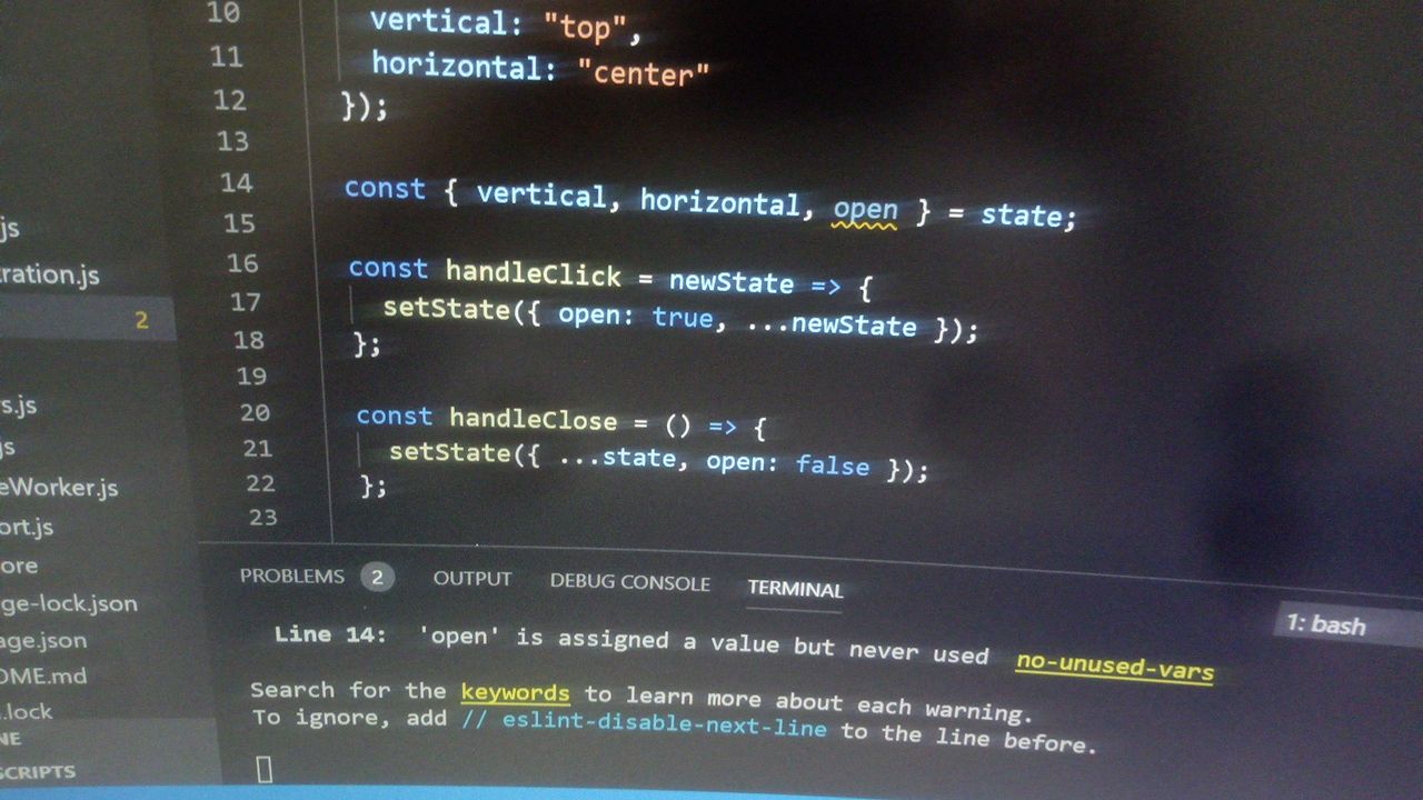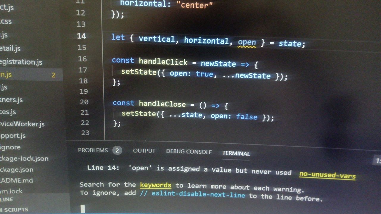 Тут не ошибка, а предупреждения что есть переменная open но она не используется, все нормально здесь