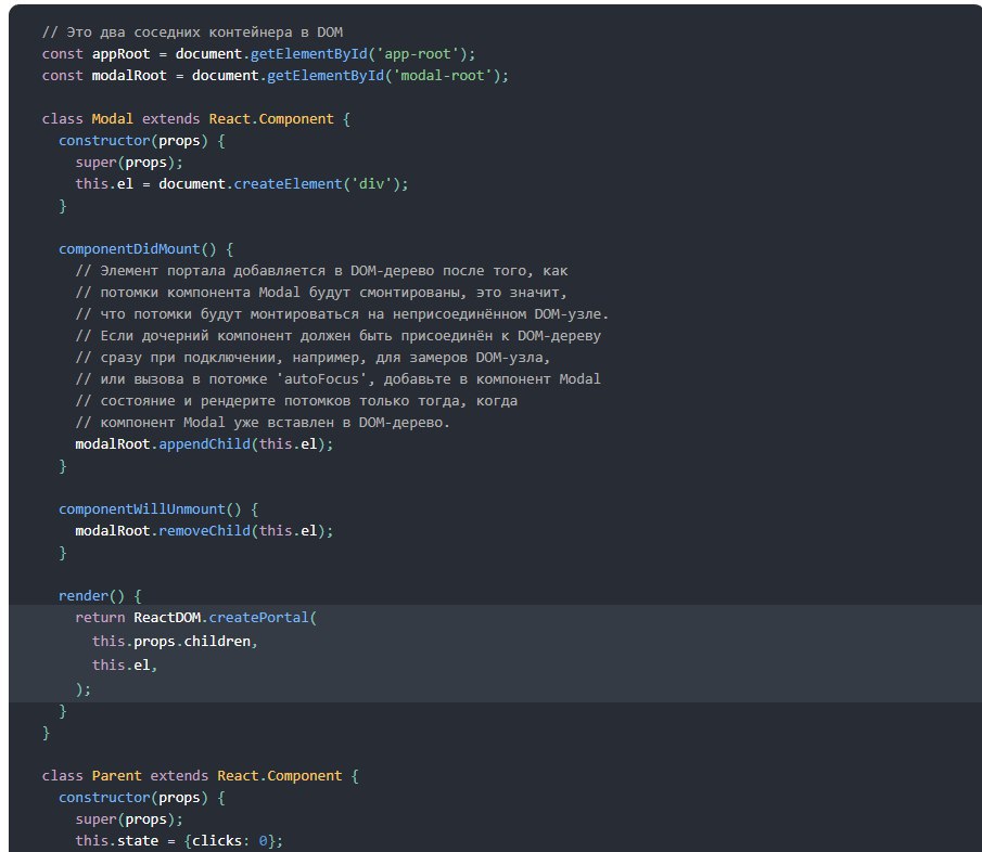 Прохожу сейчас раздел PORTALS возник вопрос, написанно что в componentDidMount нужно вситавлять элемент в DOM, но сделал бех этого, и всеровно работает, с чем может быть связанно